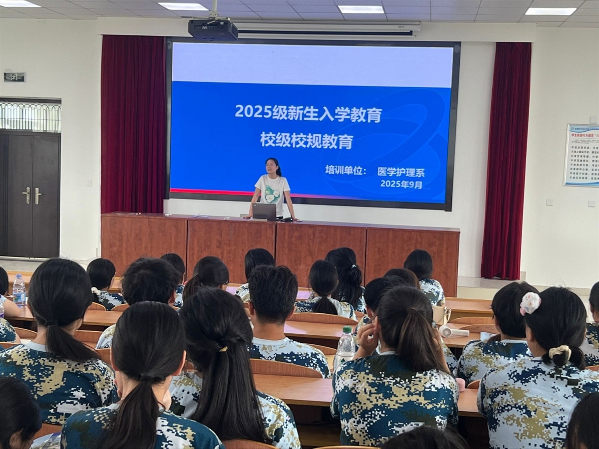 本次入学教育构建“系部统筹、师生联动、多方参与”的全员育人格局。根据学院安排,组织新生开展为期三周的军训和国防教育,充分发挥学生军事训练综合育人功能,增强学生的英雄情怀、社会责任感和国防观念。2025级护理专业新生在军训会操评比中获得一等奖和特别奖的好成绩,展现了青年学子的青春风采和精神风貌,为今后学习、生活打下了坚实基础。